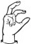 На ћирилици написано АЛЕН БЕЛЕНЗАДА састоји се из 13 слова [?]. Исписано ћириличном једноручном азбуком за глувонеме: